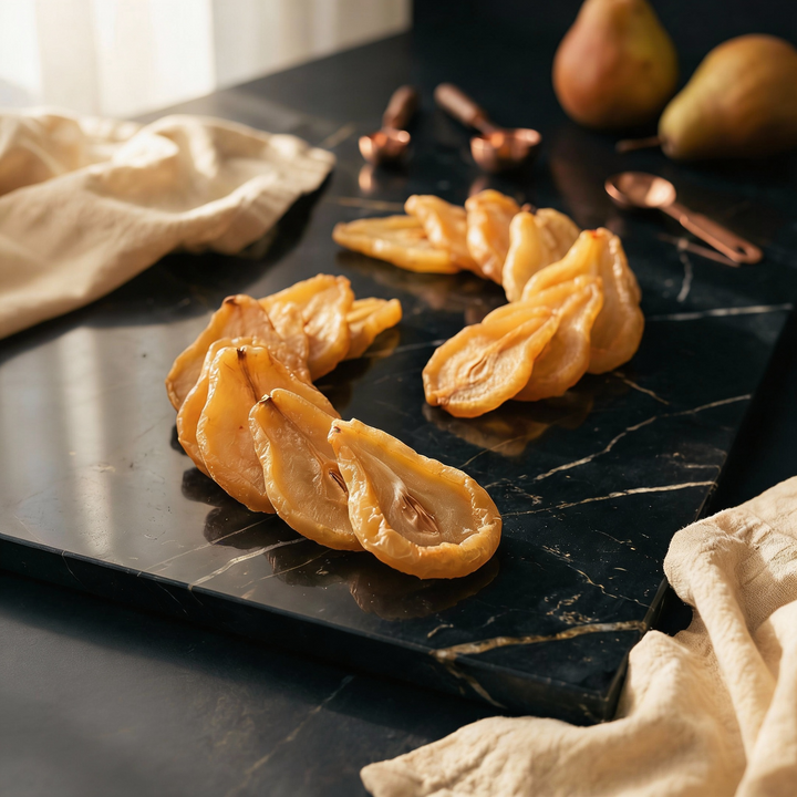 South Africa is one of the world’s great pear-growing regions, and our dried pears reflect that heritage. Grown in cool mountain valleys and fertile soils, they are gently dried to retain their subtle sweetness and soft, silky bite.
